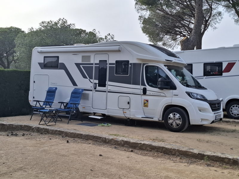 So kommt es, dass wir am 11.4. schon in Palamos ankommen und ein paar Tage hier stehen. Wir lassen den Regen durchziehen, machen einige Spaziergänge und Monika auch noch eine Radtour in das kleine mittelalterliche Städtchen Pals.