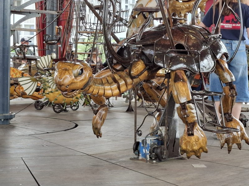 Zur Ile-de-Machines zählt auch noch das „Carrousel des Mondes Marins“, ein fast 25 m hohes Karussell über die drei Ebenen „am Meeresgrund“, „in den Tiefseegräben“ und „an der Meeresoberfläche“. Auf allen drei Ebenen sind entsprechende mechanische Fische oder Boote – ein mechanisches Aquarium…