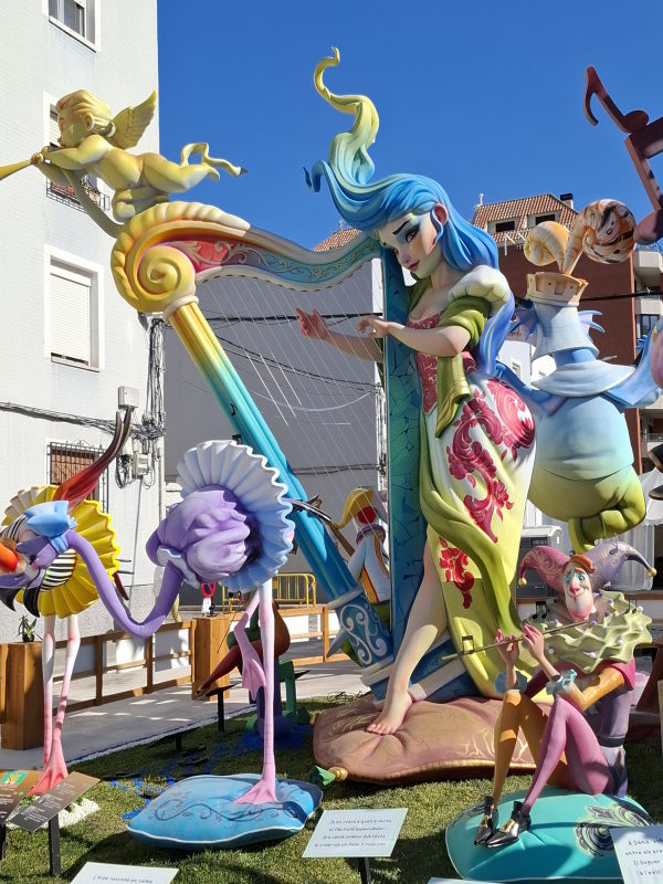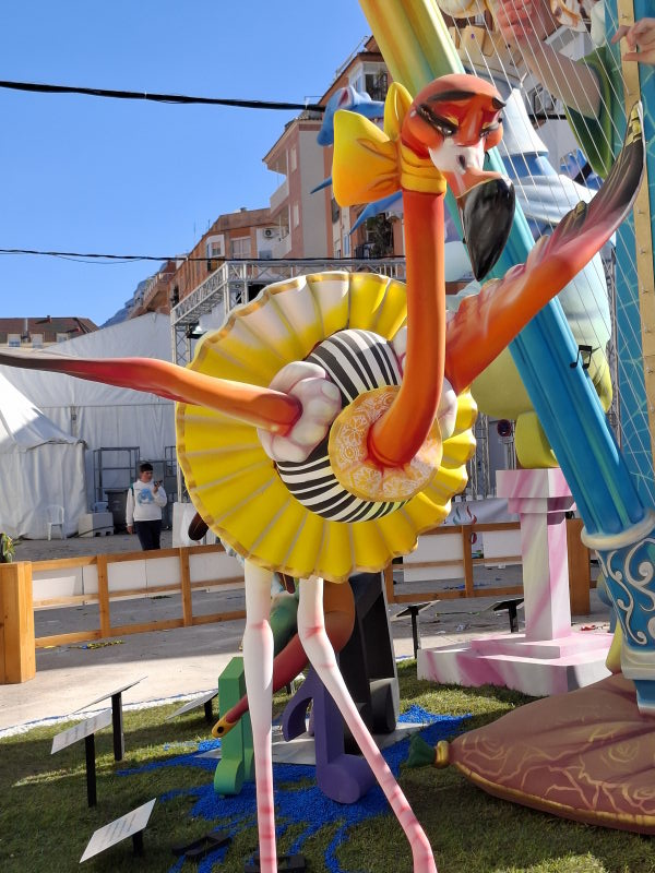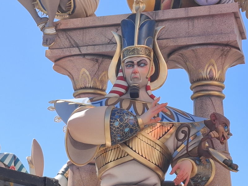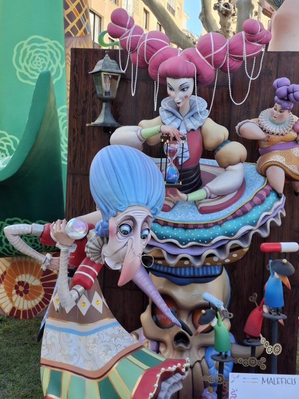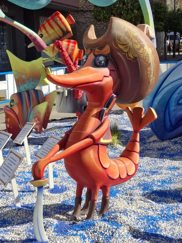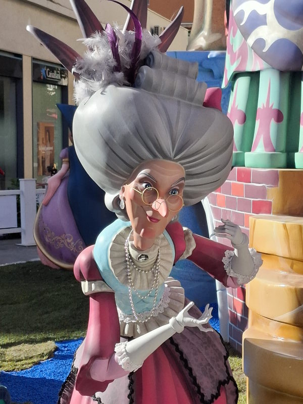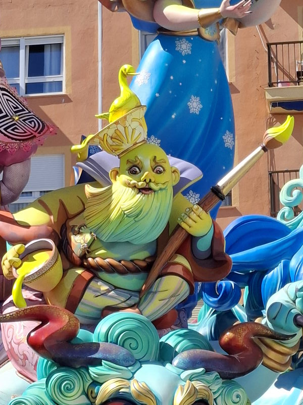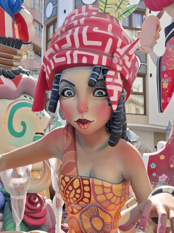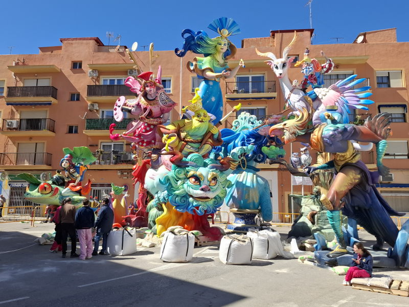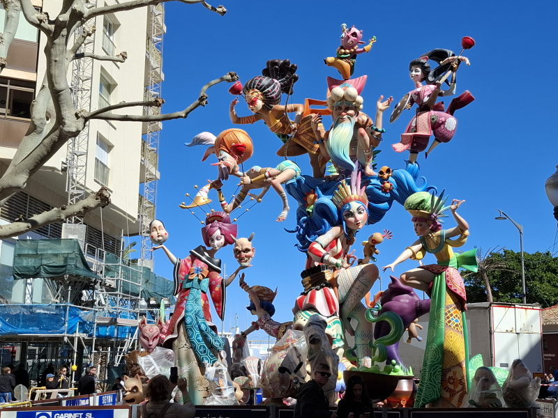 Das ist uns natürlich viel zu voll. Aber in Denia, und damit quasi vor der Haustür, wollte ich mir durchaus mal die Figuren ansehen. Die Figuren sind nur ein Aspekt der Fallas, aber sicherlich der bekannteste. Die Figuren erinnern an die großen Karnevalsumzüge in Deutschland. Hier stehen sie fest an einem Platz, erreichen aber auch beeindruckende Ausmaße! Die größten Figuren in der Hauptstadt sollen durchaus die Höhe eines 5-stöckigen Hauses erreichen können… Ähnlich wie bei den Karnevalsumzügen in Deutschland sollen die Figuren durchaus auch satirisch einige Themen aufs Korn nehmen. Das müssen dann aber sehr lokale Themen gewesen sein, denn wir haben nichts gesehen, was uns bekannt vorgekommen wäre… An den Figuren wird das ganze Jahr über gebaut. Sie stehen dann aber nur drei Tage auf ihrem Platz und werden schliesslich am 19. März bei der „Crema“ verbrannt. Damit enden dann die Fallas und das nächste Fallas-Jahr beginnt…