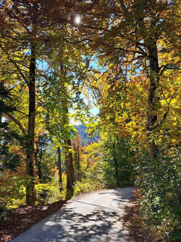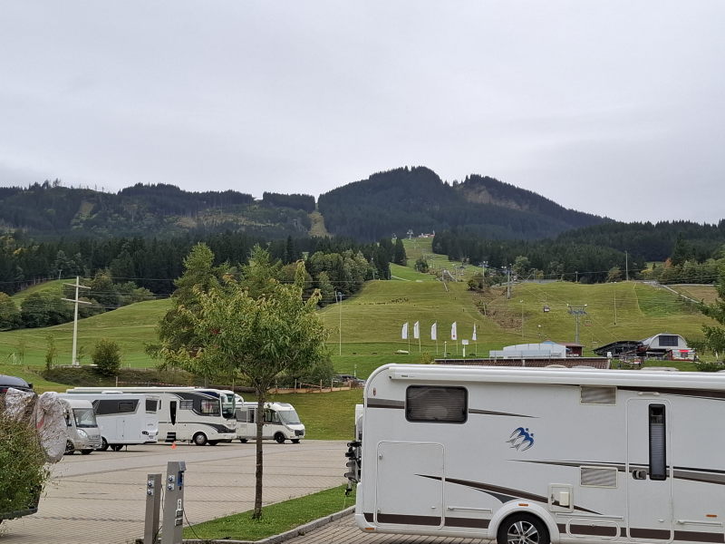 Mit Nesselwang haben wir unsere letzte Station in Deutschland erreicht. Wir sind hier auf knapp 900 m Höhe und es ist recht frisch. In der Nacht haben wir vergessen, die Heizung einzuschalten – und schwups hatten wir am Morgen frische 10 Grad im Womo! Aber hier gibt es das AlpspitzBadeCenter mit einer gemütlichen Sauna-Anlage, und dort wärmen wir uns am nächsten Tag wieder auf. Direkt neben dem Womo-Stellplatz ist die Talstation der Alpspitzbahn, die einen bis auf 1500 m hoch bringt. Dort hat man sicherlich einen tollen Blick und herrliche Wandermöglichkeiten – aber als wir hier waren hingen graue Wolken dort oben in den Bergen.