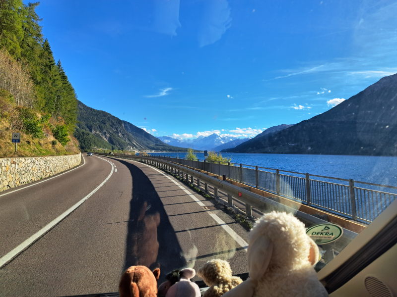 Das Wetter war an dem Tag toll und deswegen wollten wir auch gleich bis Italien durchfahren – in den Tälern in Österreich waren für den nächsten Tag schon wieder dichte Wolken angekündigt und wir wollten ja auch die Berglandschaft geniessen!