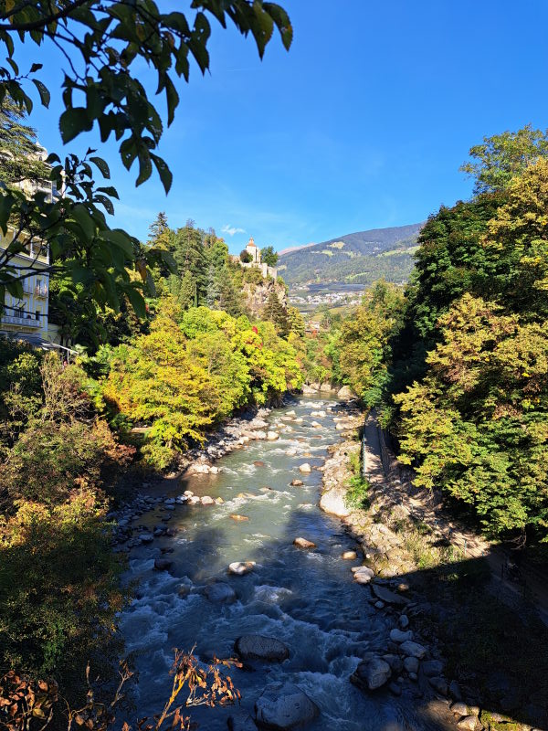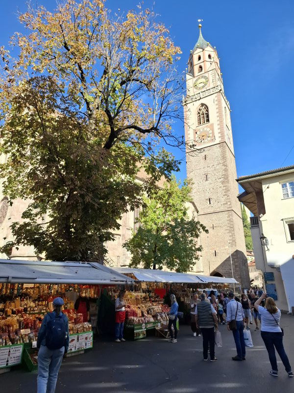 Zu Fuß gehen wir zum Bahnhof und machen noch einen Ausflug nach Meran mit der Bahn. Wir kennen die Stadt zwar schon von damals, aber entdecken wieder neue Wege durch die Stadt, die aber auch sehr voll ist heute! In Meran zu übernachten wäre keine Alternative gewesen, auf dem dortigen Campingplatz kostet eine Nacht 80 – 100 EUR!